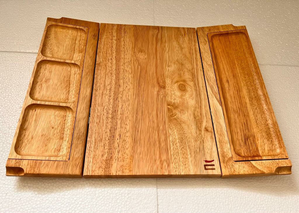 Tocător multifuncțional din lemn de tec. Atracția principală în timpul unui grătar confortabil.
